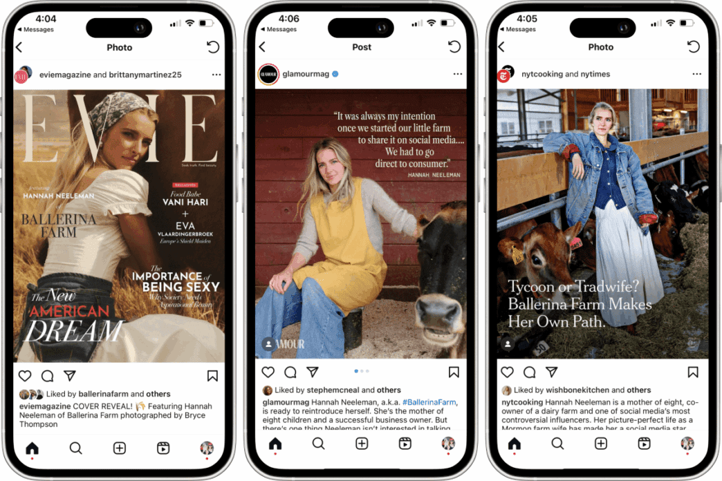 The media spotlight continued to shine on Neeleman through features in various publications. Evie magazine celebrated her as a symbol of timeless values and the ‘new American Dream’. Glamour shifted the focus away from her ‘tradwife’ label, highlighting her entrepreneurial spirit and commitment to both her business and family.