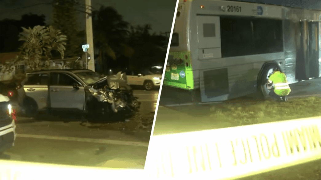 As emergency teams, including Miami-Dade Fire Rescue, arrived at the scene, they transported two to three individuals to nearby hospitals for treatment. Details about the severity of the injuries remain unclear, and police have yet to provide information about the car’s driver or the bus passengers.