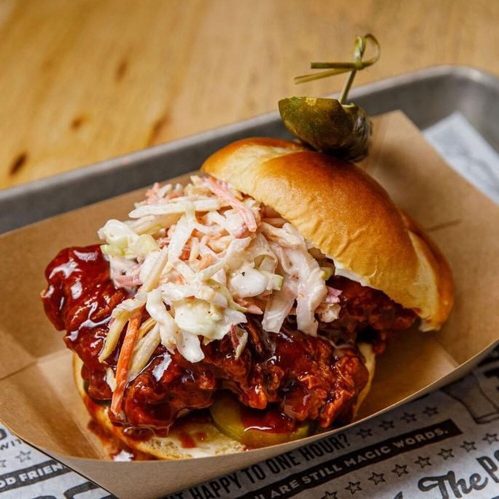 The Polite Pig’s ambiance is a mix of industrial charm and casual dining, where guests have the flexibility to order at the counter or at the full-service bar. This setup ensures a seamless dining experience, with meals swiftly delivered straight to your table.