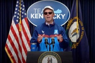 Dressed in a blue zip jacket, visor, and sunglasses, Beshear’s attire mirrored the character famously portrayed by comedian Jason Sudeikis. Yet, the governor did not remain in character throughout the session. He soon removed the sunglasses and later the visor and jacket, indicating a return to his official duties at the Kentucky Statehouse.